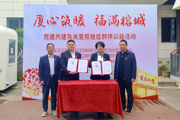 為深化銀企合作,11月11日下午,在福日電子黨委書記、董事長楊韜,黨委副書記、紀委書記陳富貴以及廈門銀行福州分行副行長鄭成輝的見證下,福日電子本部黨支部分別與廈門銀行第四黨支部、倉山分行黨支部簽訂《黨建共建協(xié)議書》,加強思想共建、促進資源共享、實現(xiàn)優(yōu)勢互補。簽約儀式后,雙方黨員代表共同走進“星點心愿”支持孤獨癥青年工作公益店,攜手開展“廈心筑暖·福滿榕城——黨建共建暨關愛孤獨癥群體公益活動”。