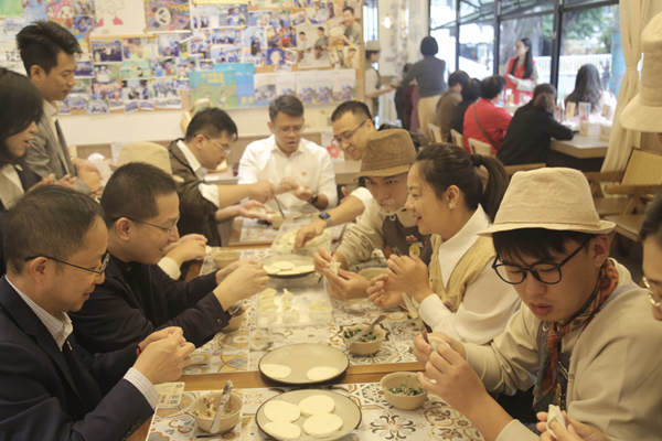 隨后,黨員們和“星員工”們圍坐一堂,同包餃子。餃子,是連接孤獨癥青年們與社會的橋梁。將餃子皮平鋪在手心,舀餡、捏褶,指尖翻飛間,一個個餃子便陸續(xù)成型——“星員工”們化身小導師,一絲不茍地向黨員們傳授技巧,現(xiàn)場歡聲笑語不斷,大家也頻頻為“星員工”們嫻熟的技術點贊。溝通交流中,大家進一步提高了對孤獨癥的認識,增進了對他們的理解和接納。